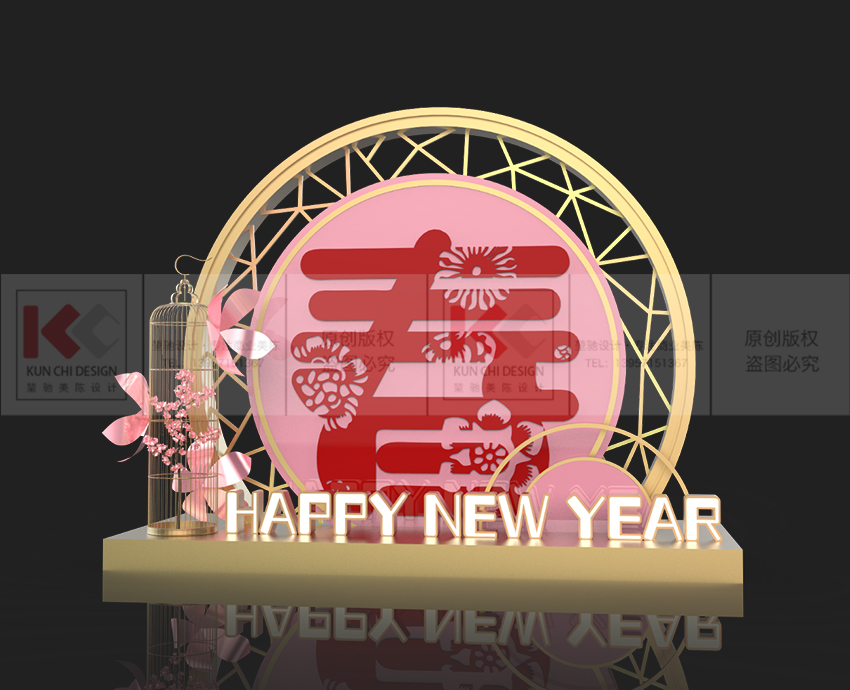 結(jié)合桃花、窗花、剪紙等元素,打造一個(gè)繁華錦簇、