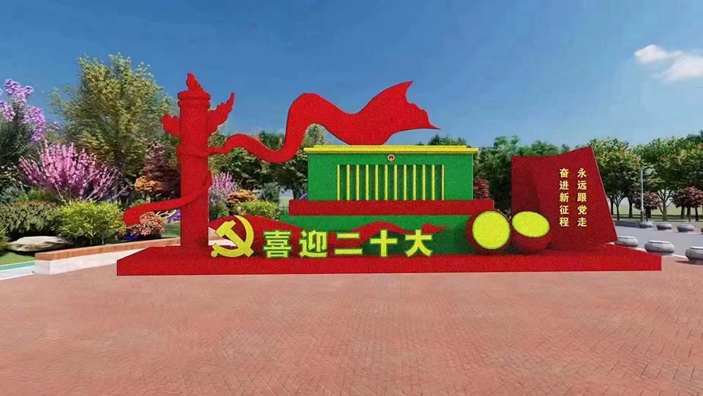 二十大黨建仿真綠植雕塑